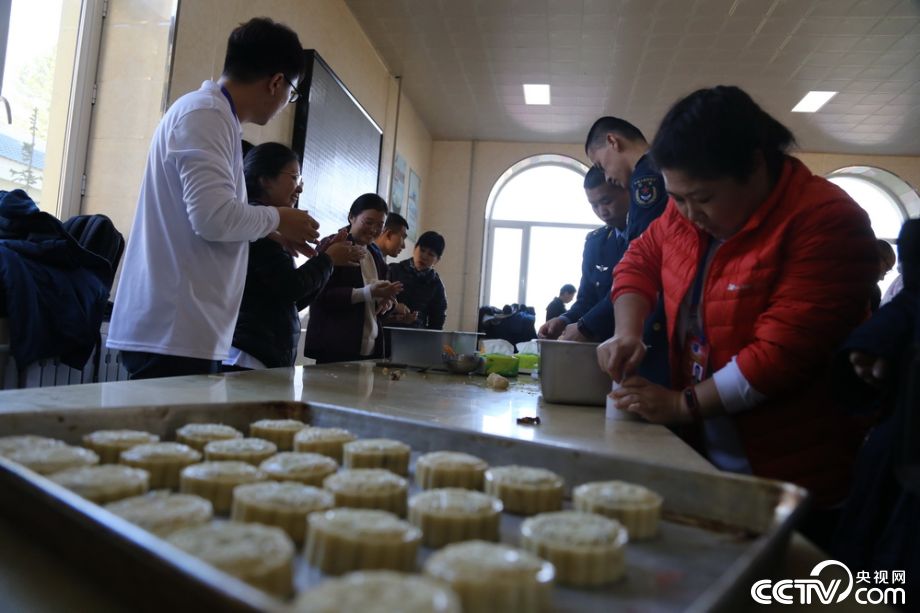 中秋佳节,漠河雷达站官兵与网络媒体国防行记者一起制作月饼。