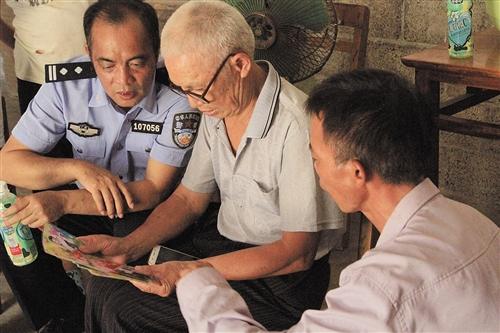 贾老给民警查看女儿雪梅走失前的照片 本报通讯员 乐雪 摄