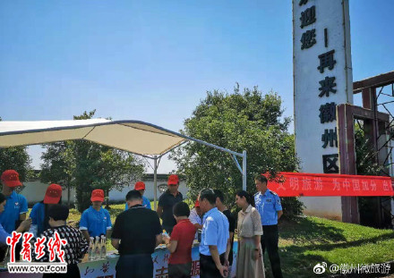 为全力做好“十一”黄金周旅游服务工作,徽州旅游志愿者在景区景点,高速出口为游客提供信息咨询 、免费矿泉水等服务。程薛华/摄