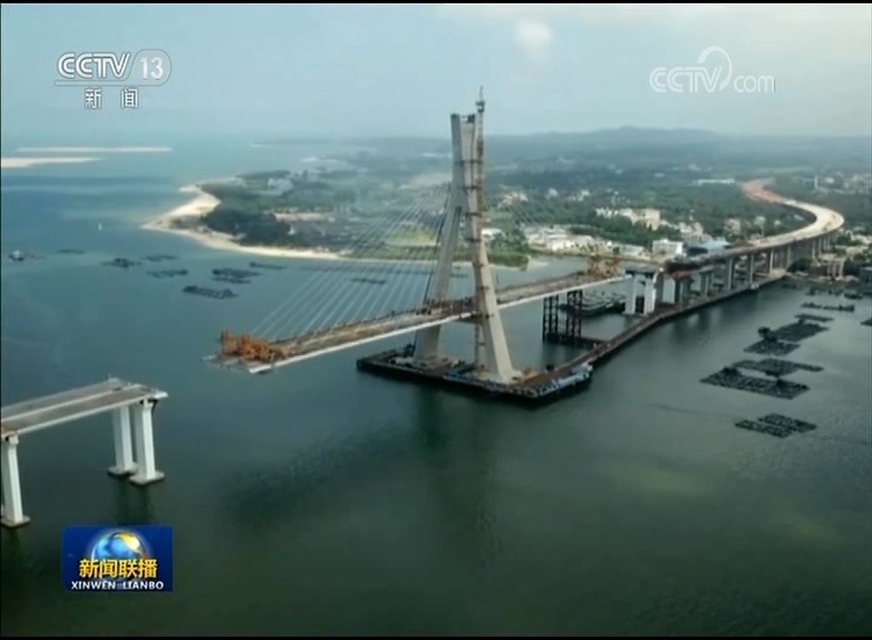 国庆佳节,从西部沙漠到东海之滨,从北国山麓到南海礁屿,一个个正在建设的大国工程,到处是建设者忙碌的身影。今天,海南文昌30度,工人们在30多米高的桥面上施工。
