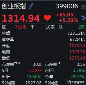 值得一提的是,创业板指今天大涨5.20%,收报1314.94点。有股民说,创业板指这是在表白,是说“一生一世就是我爱你”的意思。这是在向谁表白呢?创指今天的表白你收到了吗?