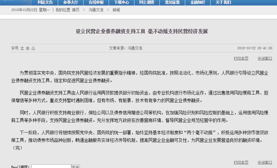 在今晚的另外一篇文章中,央行还响应此前国常会指示,提出设立民营企业债券融资支持工具,毫不动摇支持民营经济发展: