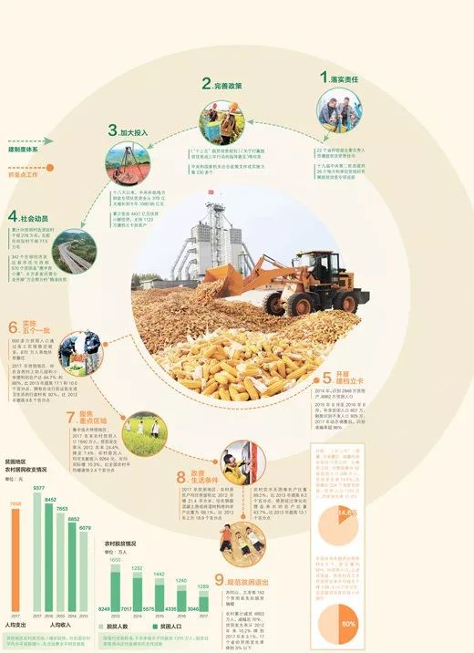 2013年11月,习近平总书记在湖南花垣县十八洞村首次提出精准扶贫。5年来,农村贫困人口显著减少,贫困发生率持续下降,解决区域性整体贫困迈出坚实步伐,贫困地区农民生产生活条件显著改善,贫困群众获得感显著增强。