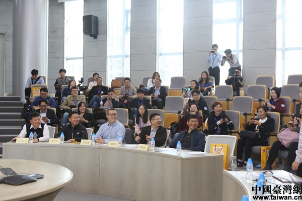 北方昆剧院院长杨凤一与两岸记者进行交流。(中国台湾网 陈佳慧 摄)