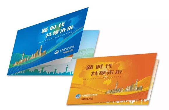图片说明:中国国际进口博览会纪念折分为开幕纪念和闭幕纪念两款