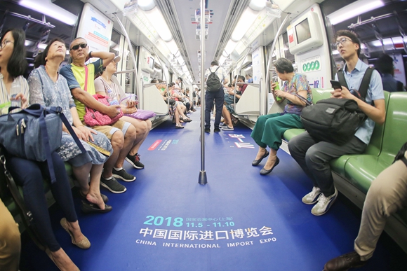 此外,为了迎接进口博览会的举办,上海地铁推出了4列“进口博览会专列”。这些满载着此次盛会“知识贴”和社会各界深情寄语的专列,将一直运行到11月10日首届中国国际进口博览会结束。其中,2列“进口博览会专列”将运行于上海地铁2号线,这条线路连接上海两大国际机场、高铁虹桥站并直达国家会展中心;另外2列专列将运行于途经虹桥机场和高铁虹桥站的上海地铁10号线。