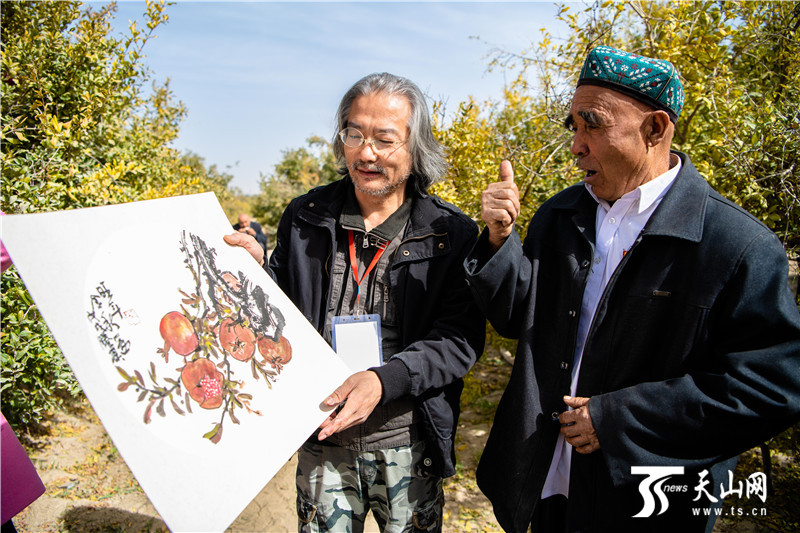 如今,新疆国画院和田石榴创作基地落户皮亚勒玛乡,不仅能丰富各族群众的精神文化生活,还将挖掘石榴的文化内涵和时代价值。在和田石榴成熟、上市之际,既通过艺术创作宣传推介和田石榴,也能用艺术助力和田脱贫攻坚,让和田的石榴红遍全国。