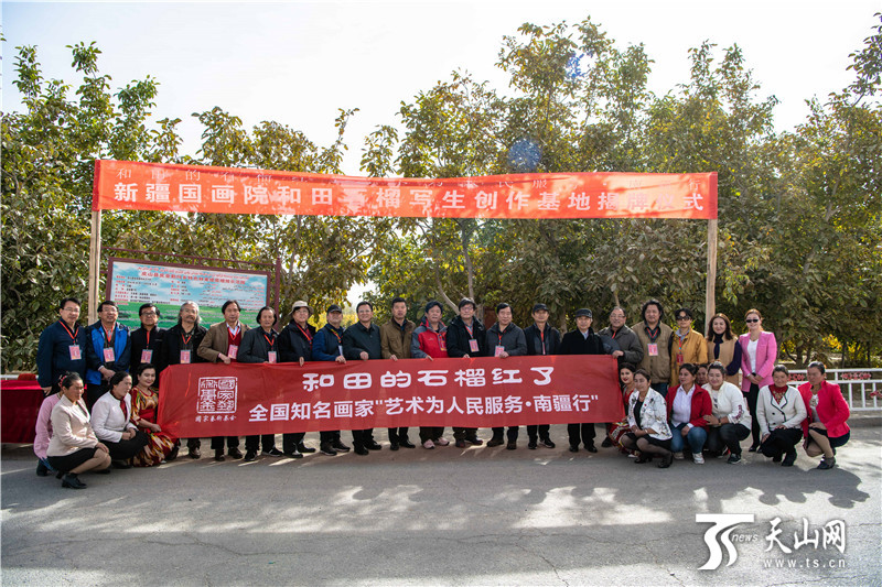 当天,新疆国画院和田石榴写生创作基地在石榴精品园揭牌。新疆国画院秘书长魏宝山说,今后,新疆国画院将组织更多的全国知名画家走进皮亚勒玛乡写生创作,宣传和田石榴,拓宽石榴产业发展的渠道,助力农民增收致富,让新疆各族群众的生活像石榴一样,红红火火。