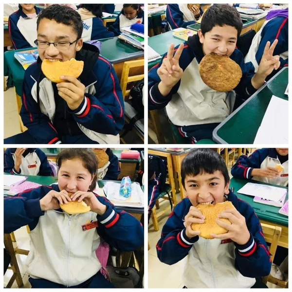 “吃馕者,觉之香,吃馕人,思故乡……”同学们吃着来自岳普湖县的馕,调皮地“吟诗作赋”。