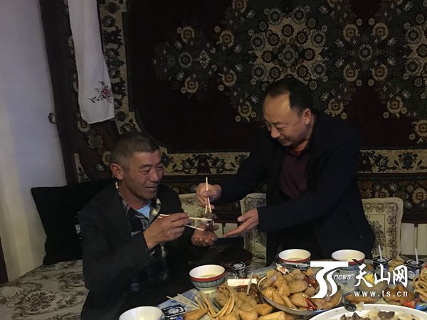 “老弟想你了,今天过来想和你聊聊天,谈谈心。”11月23日,陈树明下班来到结对亲戚塔城地区种牛场农四队哈萨克族职工阿达力太家,相互握手、拥抱。两个人亲切地问候如同亲兄弟一样。