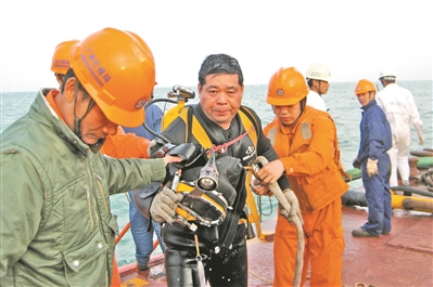 1990年入行至今,钟海锋从一名稚嫩新手熬成了单位里的老师傅。回首过往,钟海锋笑言自己能进入这一行也是很幸运。“当年潜水学校选拔的体检标准十分严格,仅次于飞行员,70人里面也才招两个人,我抱着试一试的心态报名,竟然就走到了现在。”