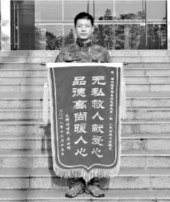 战士宋成龙接受锦旗 通讯员张鹏超 摄