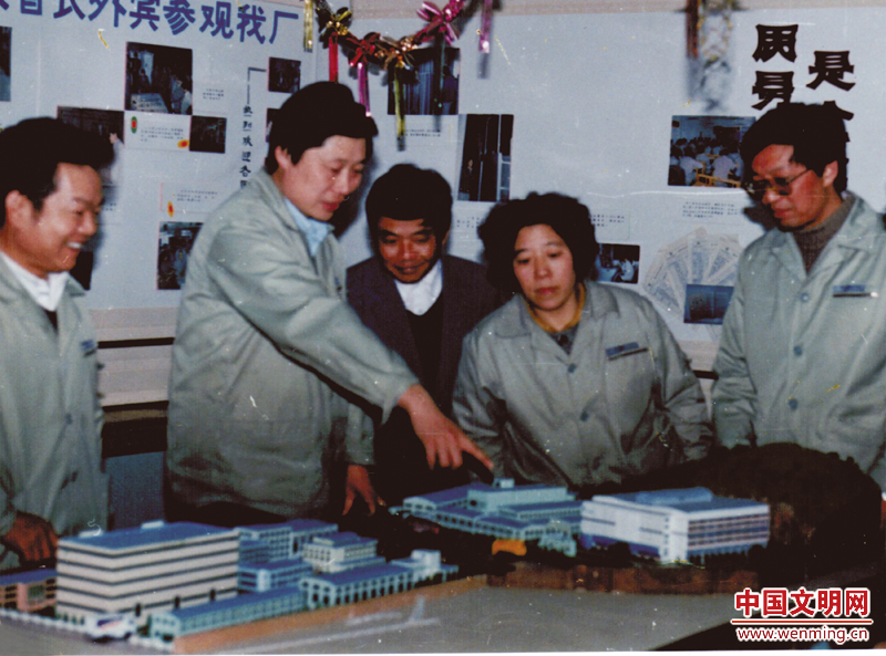 1985年,张瑞敏(左二)与青岛电冰箱总厂领导班子成员研究总厂规划。图片由海尔集团提供