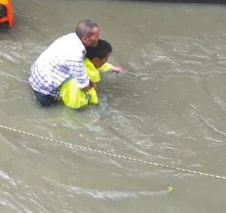 在洪水中,他与消防战士一道,四处巡查被困人员。背着被困老人从齐腰水中走过、和消防员托举孕妇、脱下衣服包裹婴儿……他往返岸上和水中,14个小时左右救出20余人,参与疏散村民400余人。