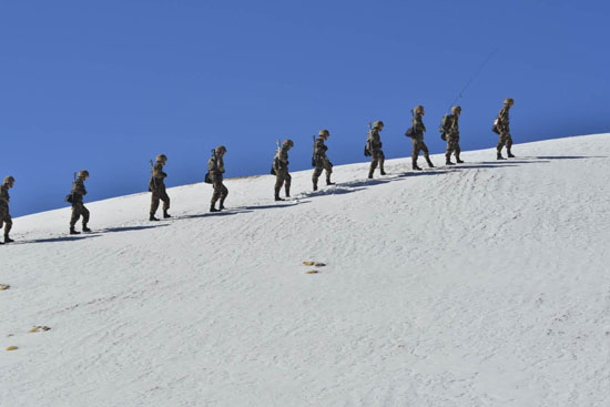 河尾滩哨卡官兵元旦期间前往海拔5000多米的某点位巡逻。崔阳阳/摄