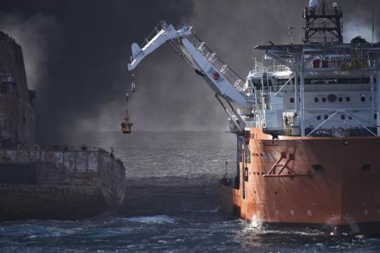 2018年1月6日,载有11.13万吨凝析油的巴拿马籍油轮“桑吉”轮在长江口外发生碰撞失火,面对难船持续爆燃及散发有毒有害气体的危险挑战,面对现场恶劣气象海况及离岸距离远、补给不方便等诸多困难,救捞队伍迎难而上,通宵达旦,连续奋战在最前线、最危险的救援现场,高效稳妥的开展了一线人员搜救,船舶消防灭火,溢油清除等工作,其中上海打捞局4名救援人员登上燃爆中的“桑吉”轮取回黑匣子和2名遇难者遗体,展现了救捞队伍良好的职业素养和过硬的作风,诠释了“把生的希望送给别人,把死的危险留给自己”的救捞精神。