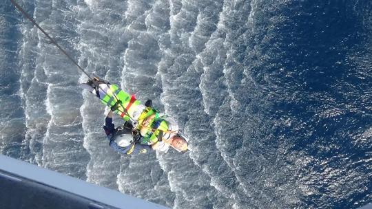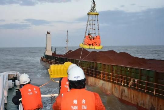 2018年9月16日,台风“山竹”裹挟暴雨袭击东南沿海。在汕头海门湾附近,塞拉利昂籍货船“LINFUNE16”号主发动机故障失去动力,随后又突遭巨浪袭击,船只被台风横推到近岸水域导致搁浅,船上9名外籍船员被困狂风巨浪之中,亟需救助,此时他们已经被困超过24小时。东海第二救助飞行队B-7310机组顶风逆行,采用倒飞方式进入现场,并将直升机停在货船甲板上,成功者在9分钟上之内将9名被困船员救上飞机。