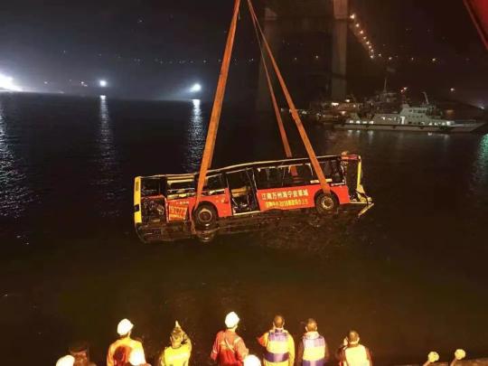 2018年10月28日10时许,重庆市万州区长江二桥上22 路公交车坠入长江。事故发生后,交通运输部高度重视,部主要领导立即做出批示,部署相关救援工作,持续组织多方力量全力开展水下探摸打捞和水面搜寻作业。上海打捞局接到命令后,快速组成应急救援队,紧急赶赴千里之外的事故现场,并迅速开展打捞救援工作。在全体成员的辛勤努力下,经过近5天的紧急抢捞,先后打捞出13具遇难者遗体,取下事故车辆行车数据记录仪,并成功将坠江公交车整体打捞出水。
