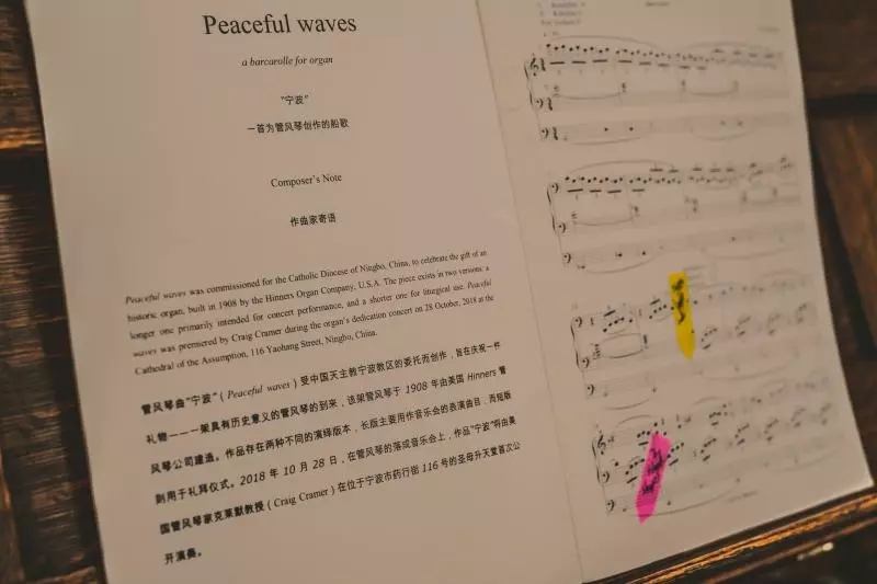报道称,在最近举办的管风琴落成音乐会上,美国诺特丹大学管风琴教授克雷格 克莱默(Craig Cramer)演奏了一曲《宁波》,曲名取意宁静的波涛,这是荷兰作曲家亚当 华姆斯(Ad Wammers)专门为此创作的一首曲子。
