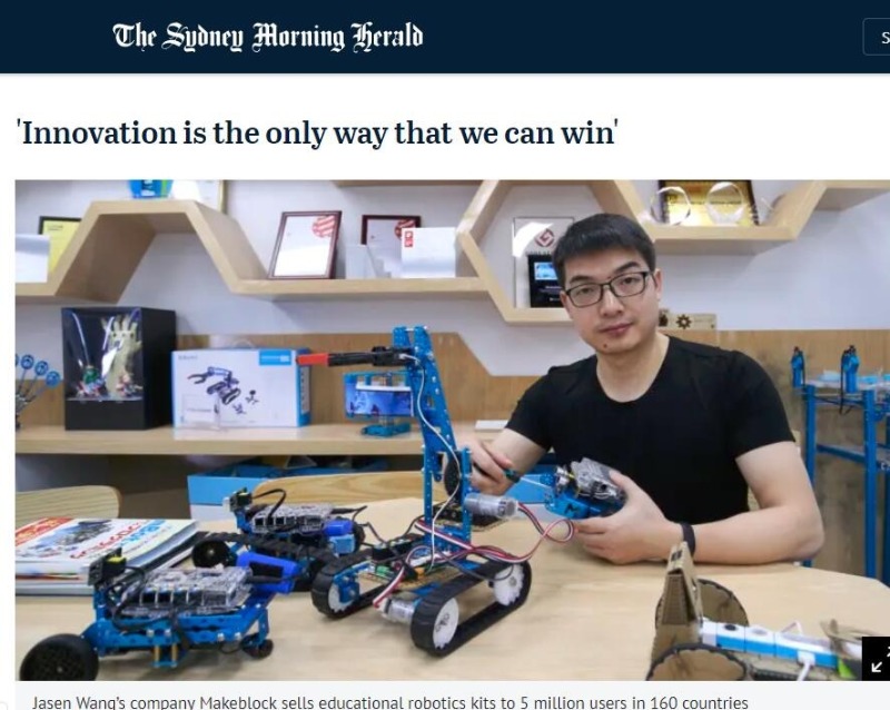 童心制物旗下的教育机器人套件远销全球160多个国家和地区,用户人数达500万。图片来源:《悉尼先驱晨报》网站报道截图