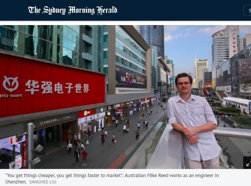 澳大利亚工程师迈克·里德说,深圳的生产成本更低,产品能够更快上市。图片来源:《悉尼先驱晨报》网站报道截图