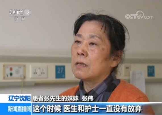 患者张先生的妹妹 张伟:这时候,医生和护士一直没有放弃,同时安慰我们说,你们不要着急,只要有一线希望,我们也尽全力抢救。