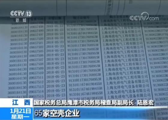 国家税务总局鹰潭市税务局稽查局副局长 陆恩宏:初步确定,犯罪嫌疑人“何总”等人以非法牟利为目的,陆续在余江区注册了某建材有限公司等65家空壳企业,通过收取“开票费”的形式,经中间人介绍,对外虚开发票。