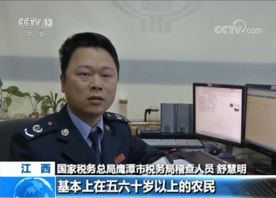 国家税务总局鹰潭市税务局稽查人员 舒慧明:(非法注册)多家新开户的企业,全部集中在乡镇、城郊和行政村,而且它们的法人代表都为外省的、年龄偏大的,基本上在五六十岁以上的农民。
