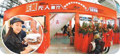 大图为无人餐厅外景,小图为乘客成功购餐。