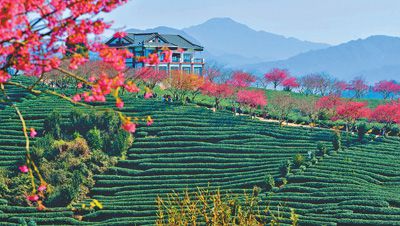 福建省漳平市永福镇台品樱花茶园里的樱花近日进入花期,陆续绽放的樱花和茶园构成一幅美丽画卷。