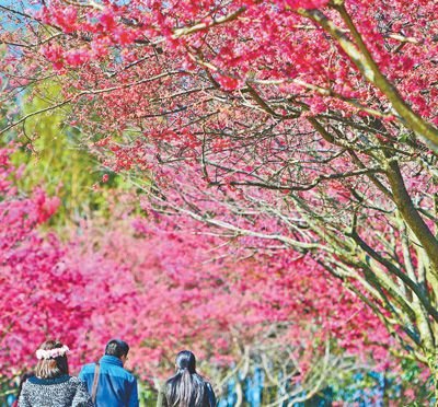 春节临近,我国南方部分地区天气宜人,暖风吐翠,叶绿花红,农田作物长势喜人,景点景区游人如织,一派欣欣向荣、生机盎然的美好景象。
