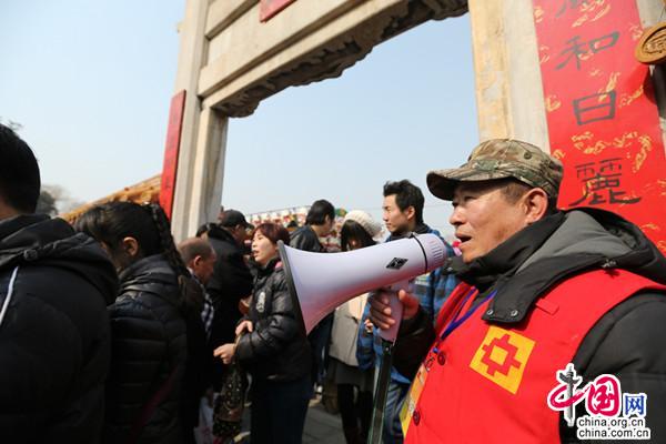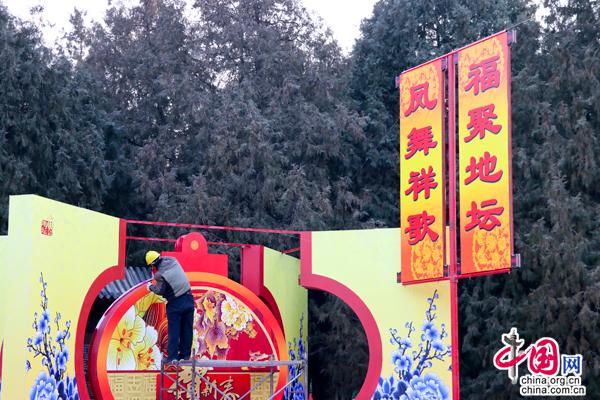 工作人员紧锣密鼓地布置庙会现场。中国网记者 金慧慧 摄