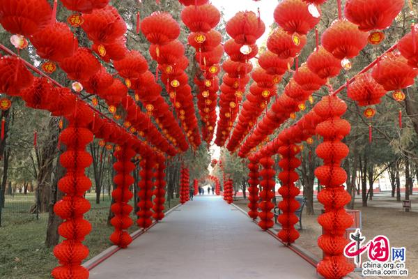 地坛公园步道两边挂满灯笼。中国网记者 金慧慧 摄