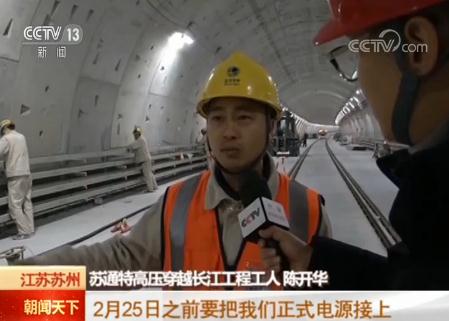 在长江江苏苏通大桥旁的江底隧道中,200多名电力建设者,这个春节,一刻也不敢停歇。