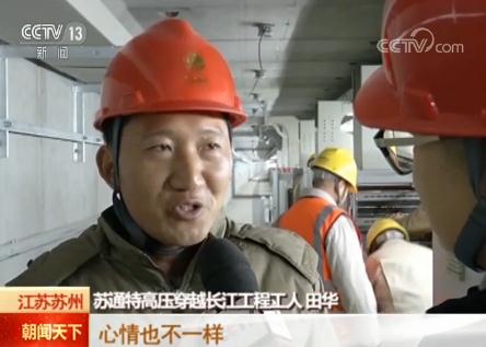 苏通特高压穿越长江工程工人 田华:春节期间兄弟们干活,心情也不一样,想家嘛。