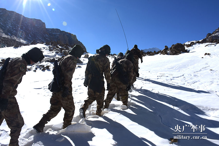 央广网2月8日消息(晏良 平措仁青)人工巡逻的制高点在哪,笔者没有考证,但春节征服海拔6280米冰川,却有幸见证。大年初一,西藏军区岗巴“高原戍边模范营”挑选耐力王、爬坡王等骨干破晓出征,笔者随队巡逻贺岁,登高迎春。