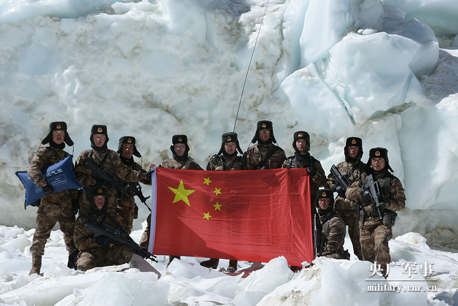 “我们在海拔6200米的西藏边关,祝全国人民新春快乐,扎西德勒……”队员们在雄关展示五星红旗,骄傲宣誓:“我站立的地方是中国!”