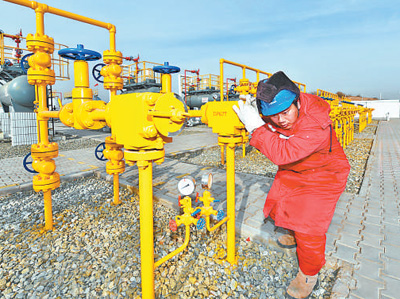 郭鑫在巡检设备。巡检气田 守护安全(见图)本报记者 张 枨摄影报道