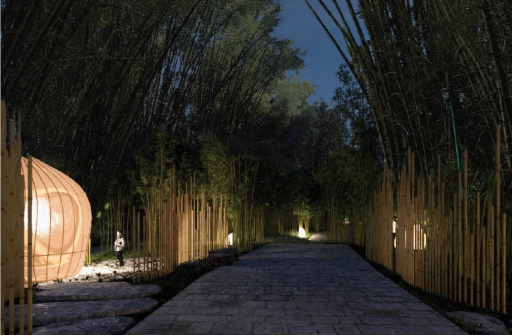 被竹灯点缀的竹园。
