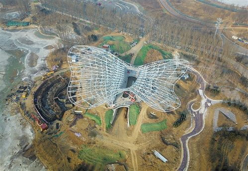 冬日的北京延庆,阳光明媚,碧空如洗。在妫水河畔,距离八达岭长城约10公里的地方,2019年中国北京世界园艺博览会将在几十天后揭开美丽面纱。