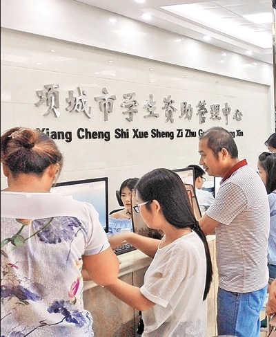河南省周口市项城市学生和家长在学生资助管理中心办理助学贷款。资料图片