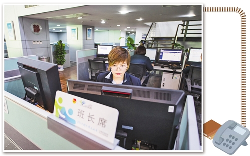 在1平方米左右的工作台上,摆着一部电话,一台电脑,配上纸笔、保温杯和常年随身携带的润喉糖,上铁12306客服班长张青青开始了一天的工作。