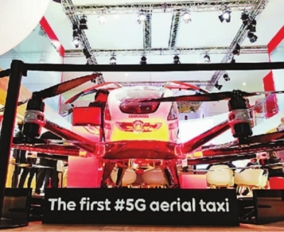 2019年世界移动通信大会2月25日在西班牙巴塞罗那开幕,多家企业推出包括5G手机在内的一系列5G产品和技术方案。图为2月26日卡塔尔电信集团在大会上展出5G空中出租车。新华社发