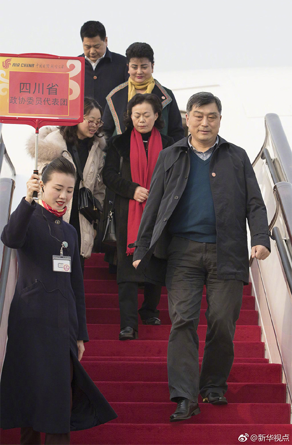 1日16时许,乘坐CA4197次航班的四川省全国政协委员抵京。这几天,京外全国政协委员陆续抵京报到,准备出席将于3日开幕的全国政协十三届二次会议。今年是新中国成立70周年,也是人民政协成立70周年。2000多名全国政协委员将在会议期间共商国是、建言资政、履职尽责。(文字吴嘉林、陈炜伟,摄影王晔、陈晔华)