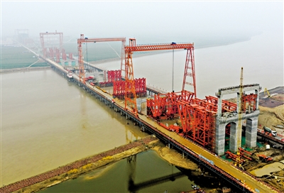 郑济高铁郑州黄河特大桥首件连续钢桁梁顺利架设