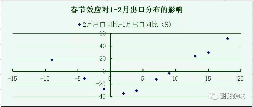 根据上表,得出春节效应对1-2月出口分布影响的分析图如下:
