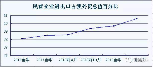 2018年前10个月,民营企业进出口9.88万亿元,增长14.6%,占我外贸总值的39.4%,比去年同期提升1.1个百分点。