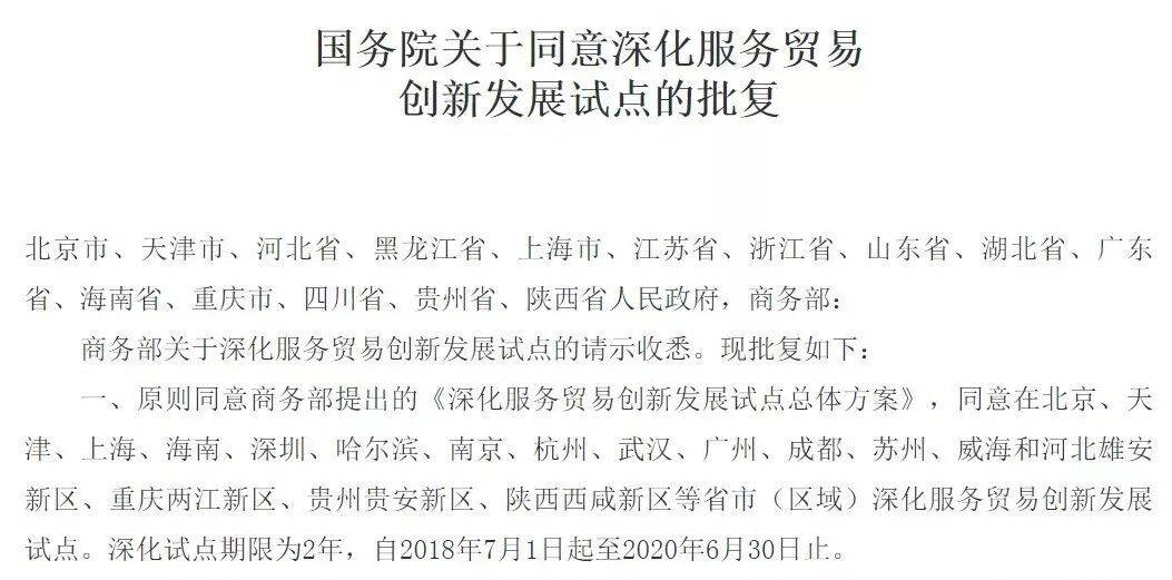 · 服务贸易创新发展试点扩大到17个地区,复制推广29条试点经验。