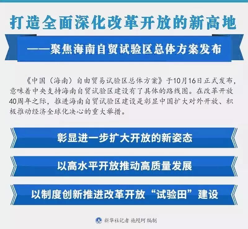 在海南全岛设立自贸试验区,制定出台进一步深化广东、天津、福建自贸试验区改革开放方案,推动出台支持自贸试验区深化改革创新53项政策措施,复制推广30项制度创新成果。探索建设中国特色自由贸易港。