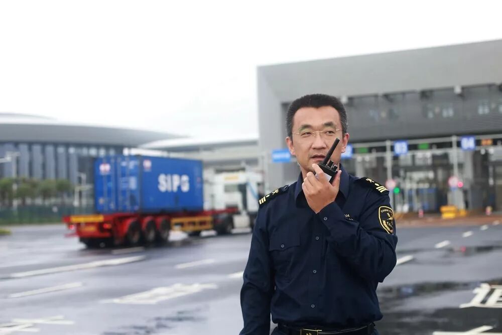 一个身穿深蓝色海关查验服的男子,手拿对讲机从车道走了过来。老聂不老,40岁出头,留着平头,戴着无框眼镜,笑起来透着北方汉子的憨气。只因说话办事沉稳内敛,大家也就不自觉地赋予了这个“雅号”。
